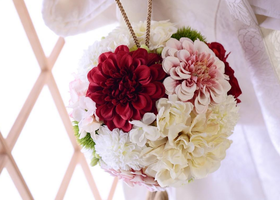 A Collection of Round Japanese Ball Bouquets Inspired by Senior Brides to Complement White and Colorful Kimonos