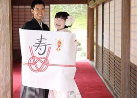 "Handcrafted Calligraphy Shot Ideas for Newlyweds: Must-Write Phrases for Your Pre-Wedding Photos in Traditional Japanese Attire"